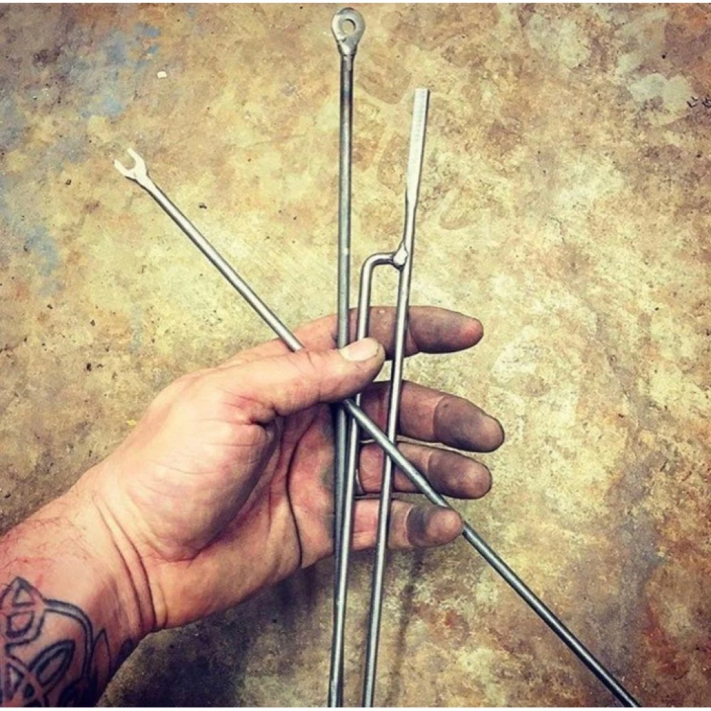 Für alle, die am offenen Camp-Feuer, oder über der Feuerschale, größere Teile als nur ein Würstchen grillen wollen. Z.B. ein komplettes Huhn. Oder ähnliches. Ein Drehspieß, den man mitnehmen kann: die beiden Bodenstützen in den Boden stecken, den Drehspiess durch das zu grillende Teil stecken, und in die Bodenstützen einfügen. Das zweiteilige Design des Drehspieses sorgt dafür, dass das Grillgut nicht einfach um den Spiess rotiert, sondern sich wirklich mit dreht.