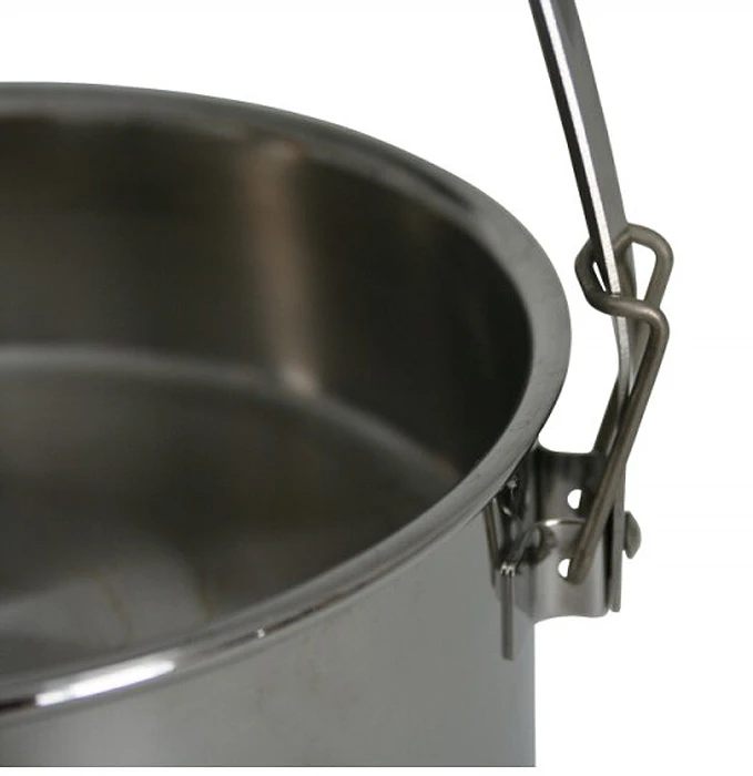 - aus dickwandigem 18-8 (304) Edelstahl, der auch die Hitze eines starken Kochfeuers aushält
