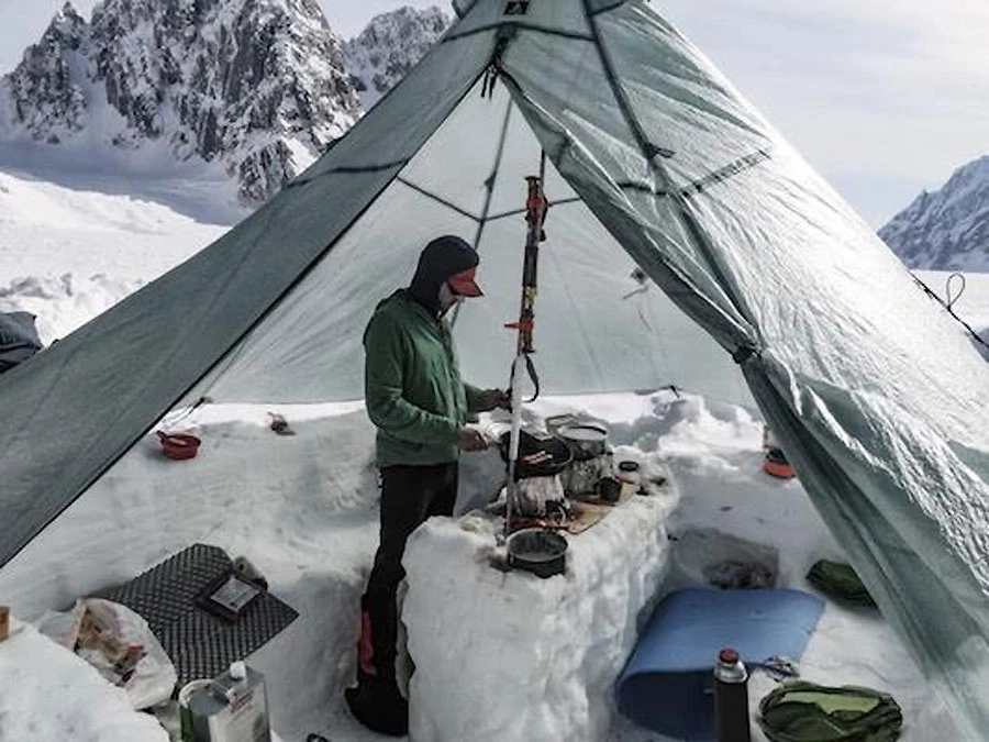 Ein ultraleichtes, ultrastabiles Pyramidenzelt für 3-4 Personen (oder als geräumiges Basislager für 2) auch bei harten Touren.
