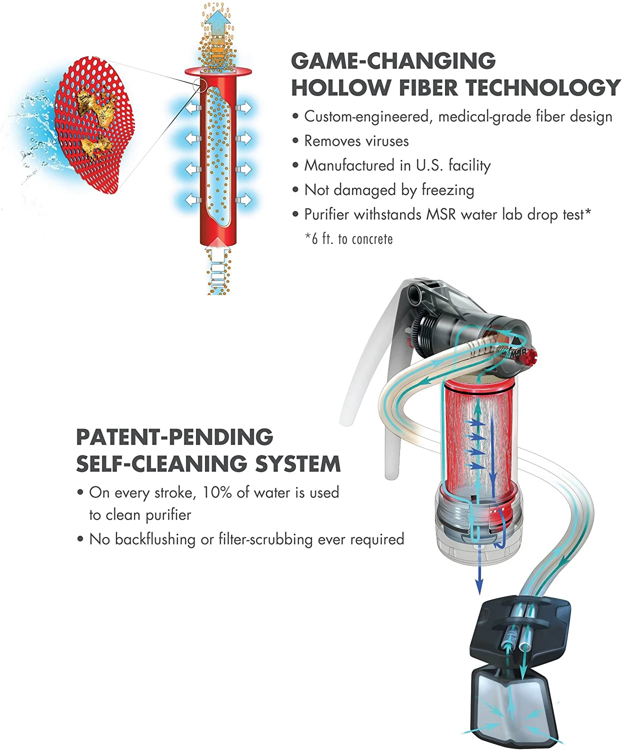 Schnell und leicht: Pumpt bis zu 2,5 Liter pro Minute. Wie die meisten modernen Filter nutzt er Hohlfaser-Filter, die bis zu