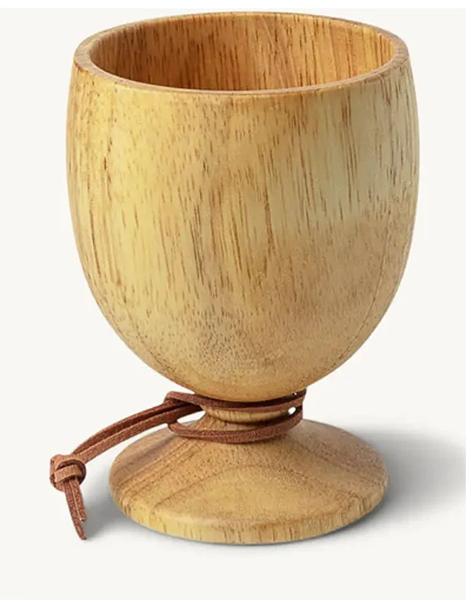 Ein Weinglas aus geschmacksneutralem Holz, ungewöhnlich in der Optik.