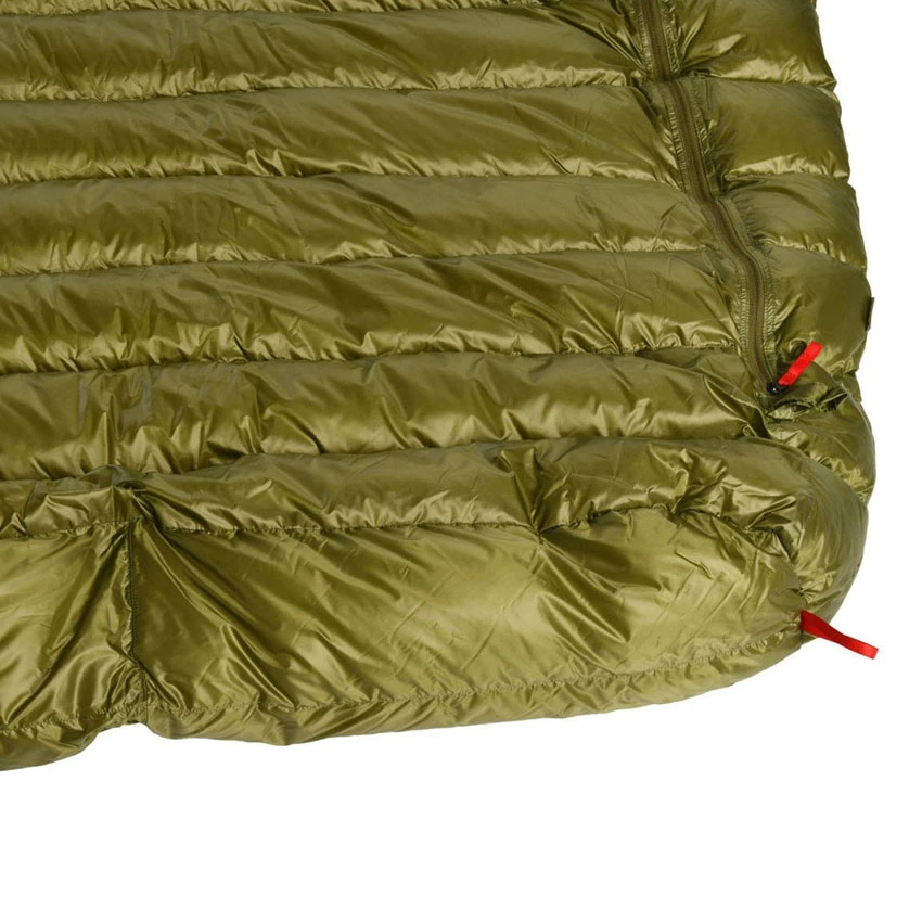 Mit allen Details, die ein guter outdoor-Schlafsack hat, wie: sehr gute Warmhalte-Gewichts-Relation, sehr gutes Packmaß, wie bei den Solo-Schlafsäcken.