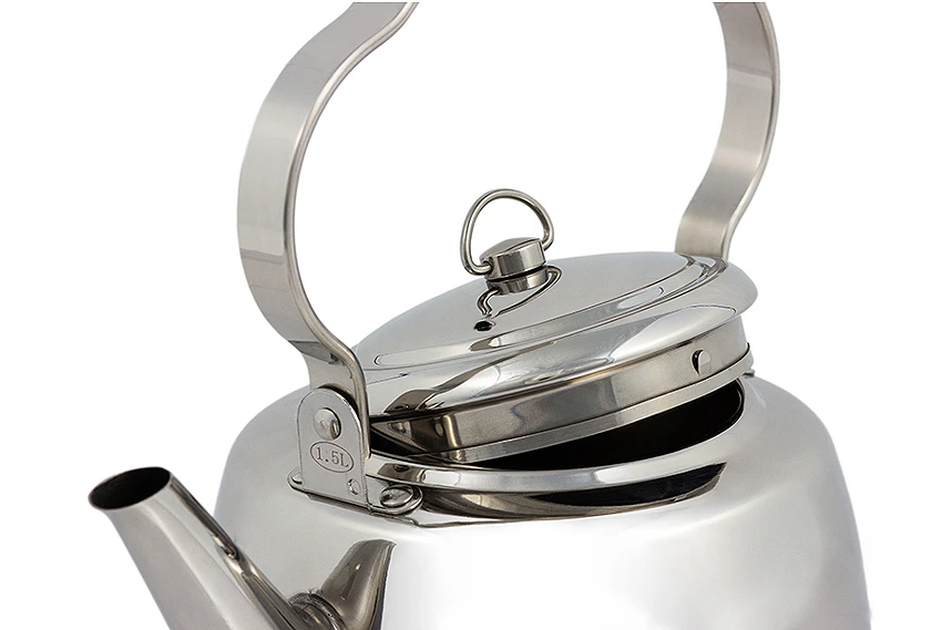 Ein sehr schöner Wasserkessel (von Petromax als Teekessel bezeichnet) aus Edelstahl, für die Zubereitung von Tee- oder Kaffewasser (Kenner bereiten beides gleich im Kessel) aus hochwertigem Edelstahl.