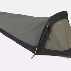 Ein Biwaksack, der schon fast ein Solo-Zelt ist. Ungewöhnlich für einen Biwaksack ist der Gestängebogen, der das Kopfteil hoch und luftig hält. Mensch kann den Eingang nachts geöffnet lassen, vor Insekten, die das nutzen könnten, schützt ein Moskitonetz.