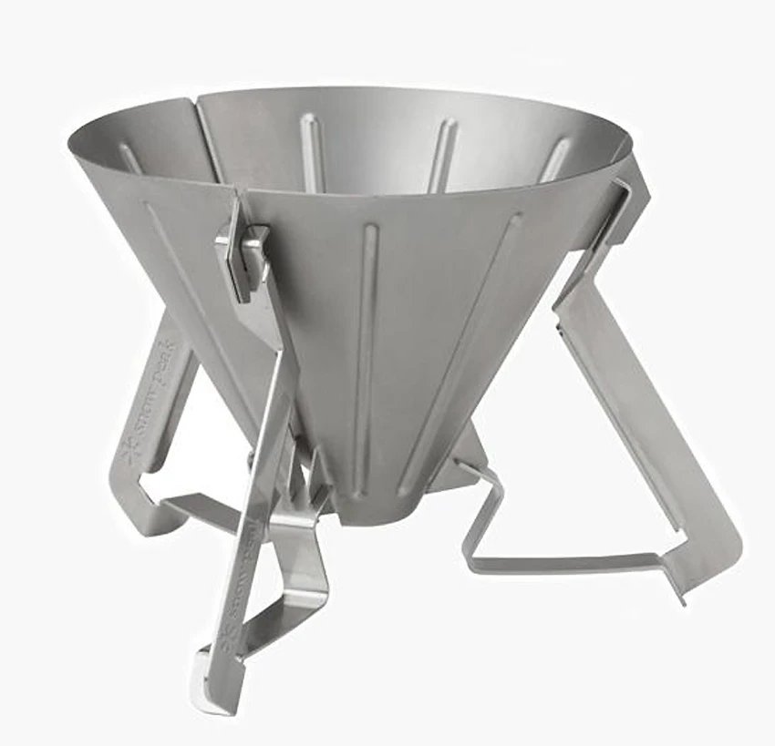 Der Kaffeefilterhalter aus der „Field Barista Serie“ von SnwoPeak ist für alle, die zu Ihrer stylischer Kaffeekanne auch einen passenden Filterhalter für die Kaffeebereitung suchen. Es gibt ja mehrere Linien der anspruchsvollen Kaffeefreunde, der gute alte Kaffeefilter liefert, wenn er richtig gehandhabt wird, auch sehr köstlichen Kaffee. Nicht nur morgens. (Das zweite und wohl wichtigste Teil der Serie haben wir schon genannt, den Kessel. Das dritte Teil ist die Kaffeemühle – sehen Sie jeweils dort).
